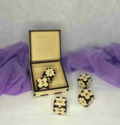 Voici une petite boite contenant 5 dés à jouer, idéal pour une partie de Yams entre amis!