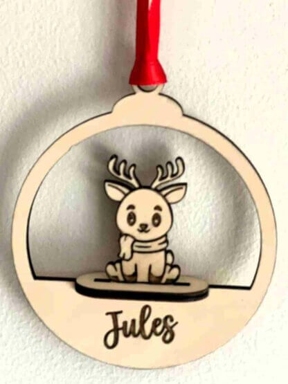 Boule de Noël avec adorable petit renne, idéal pour un petit cadeau personnalisé