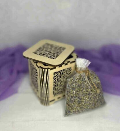 Petit coffre ajouré idéal pour y insérer un petit sachet de lavande